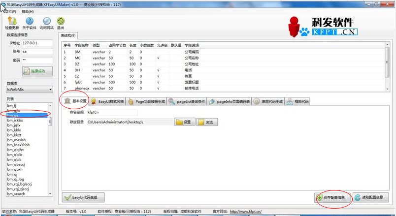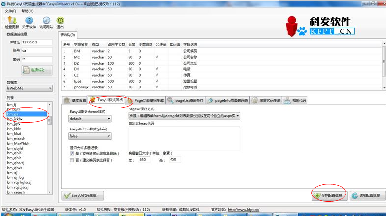 11.自动保存EasyUI代码生成相关的配置信息,方便下次继续使用。