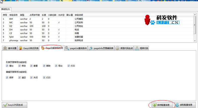3、选择“page功能按钮生成”,在里面还是进行设置,然后在【保存配置信息】