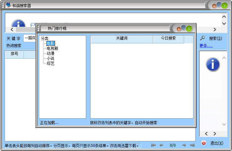 和谐资源搜索器是一款基于P2P技术的资源搜索软件,基于先进的P2P搜索技术,简单便捷的搜索到网络上共享的海量影音娱乐,学习资料、软件图片等资源。搜索出来的资源可以用电驴或者迅雷下载工具下载,软件绿色无需安装非常方便。