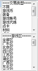 2、选择要查询的交易类型如帐号、装备、游戏币等