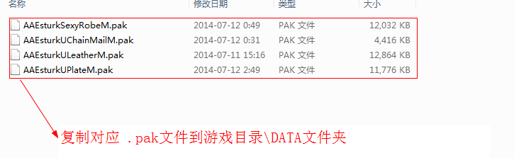 2.复制对应 .pak文件到游戏目录\DATA文件夹