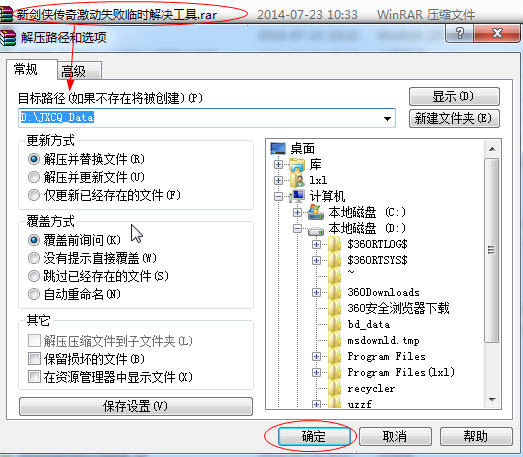 先保存根目录下的Param.exe,再解压到 游戏根目录\JXCQ_Data下.