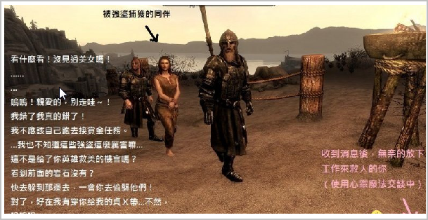 非常有趣的一个MOD,同伴和追随者可以去旅行,去参观各城镇,或者跑去接受作死的赏金任务;成功干掉目标会得到奖赏。