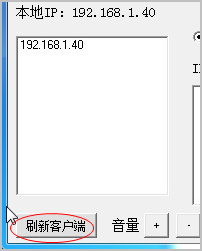 1、点击刷新客户端,找到局域网内具有音响共享的设备。