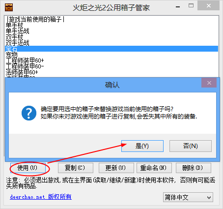 3、选择要替换的箱子,然后点击【使用】来替换游戏中的箱子