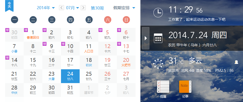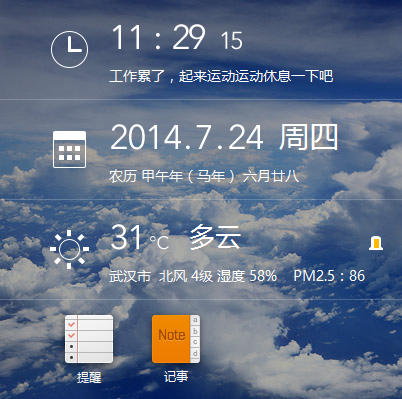 软媒时间是从最新版的魔方电脑大师6.0中提取出来的一个电脑桌面天气日历软件,启动后会在桌面右下角替代系统的时间,同时还可以显示日历和天气,功能比系统自动的时间更强大。