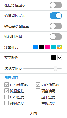 3、右键点击悬浮窗可以设置悬浮窗显示内容
