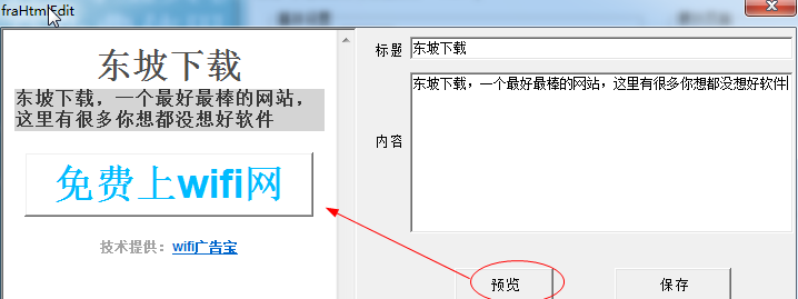 3、这时就可以再空白处输入自己想做广告的内容,点击【预览】,就会在左边出现