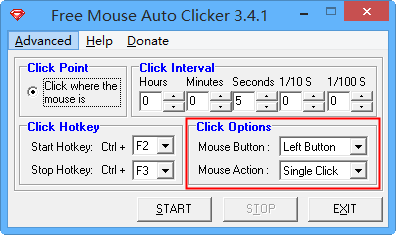Free Mouse Auto Clicker 是一个免费的鼠标自动点击软件,它可以帮你完成重复点击鼠标的工作。如果你在平时的游戏或是工作中经常需要大量点击鼠标左键或右键,如果你喜欢玩网络游戏,RPG游戏,那么一定有大量点击鼠标的操作,非常浪费时间,浪费精力,消耗鼠标,这个小软件可以解放你的手指啦!