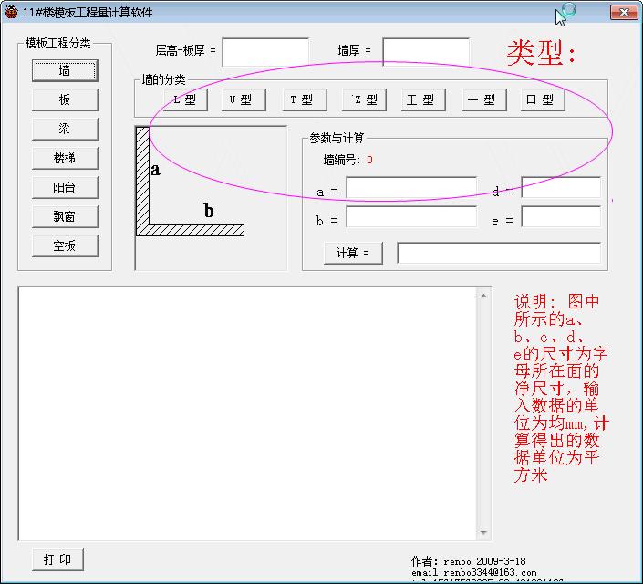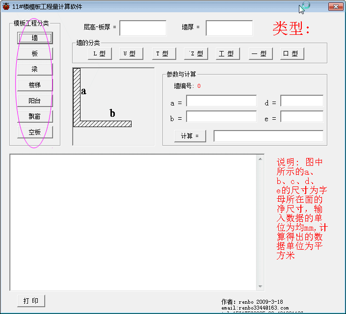 模板工程量计算软件(支持打印)是一款功能非常强大且绿色免费的软件,只要你输入对应的数值,就能计算出结果,你值得拥有哟!