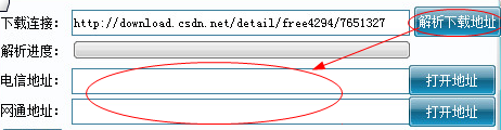 2、点击【解析下载地址】,这时就能把地址转换为电信或者联通可以下载的地址