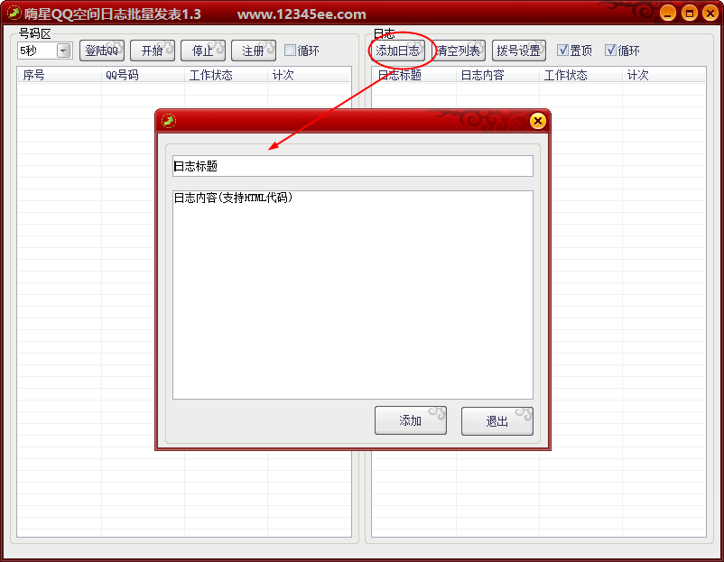 1、点击【登录QQ】导入用来发表日志的QQ号