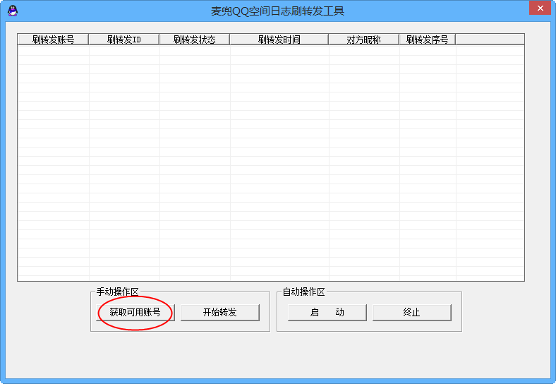2、点击【获取可用账号】获取刷转发的QQ小号