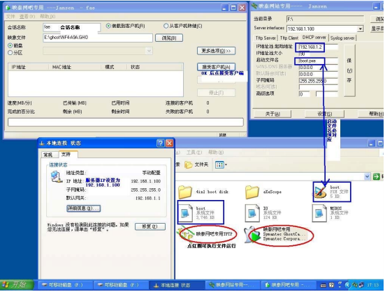 用于网吧和学校机房重装系统,只需将母盘做成gho文件,然后将工作站设为pxe启动,就可对工作站硬盘重新分区或克隆。