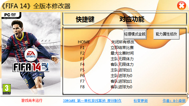 对应游戏版本 :基于FIFA2014 终极版 1.0 - 1.4版本制作,采用特征码方式亦或支持其他版本