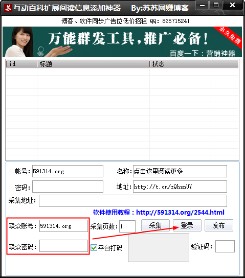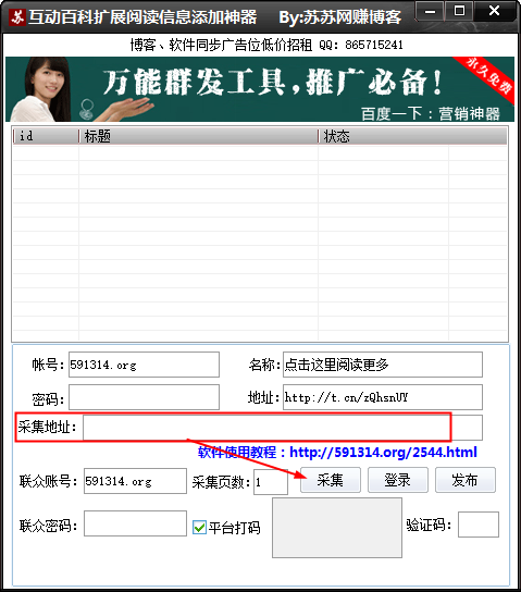 互动百科扩展阅读信息添加神器是一个免费的互动百科扩展阅读批量添加软件,可以批量在互动百科的词条上添加扩展阅读(添加网址),并且没有任何的限制。