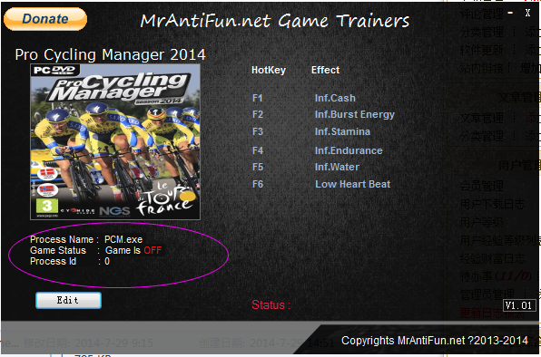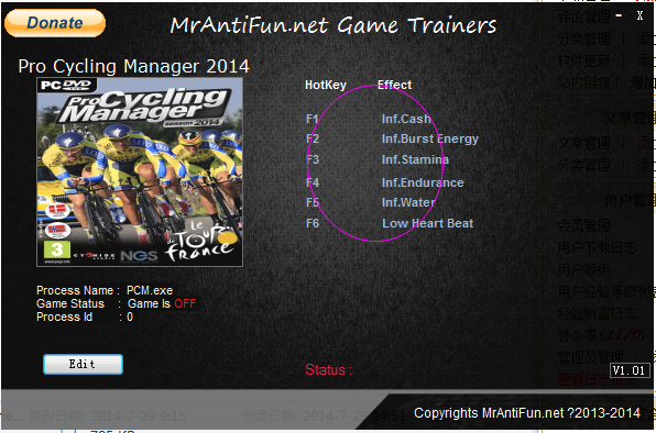 职业自行车队经理2014六项修改器是一款功能非常强大且绿色免费的辅助修改软件,提供无限金钱、无限体力、无限耐久等等实用功能。让你体验不一样的游戏魅力,你值得拥有!