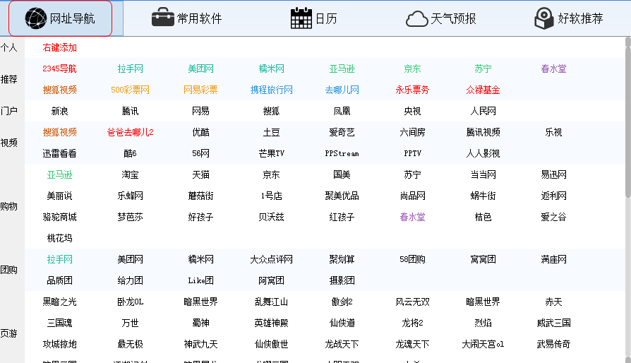 在"个人"栏可通过右键菜单,方便的添加新的网址。