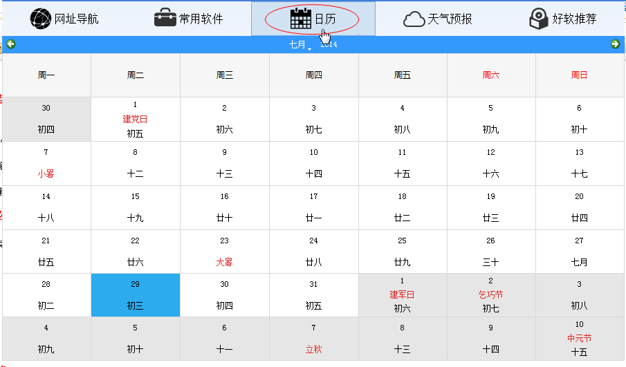 也还可以通过选择“日历”来查看今天具体情况