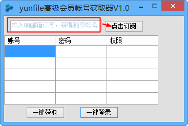 1、打开yunfile高级会员帐号获取器,输入你的QQ邮箱,点击订阅