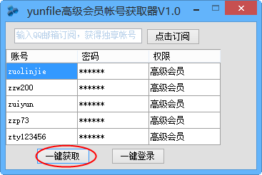 yunfile高级会员帐号获取器使用方法
