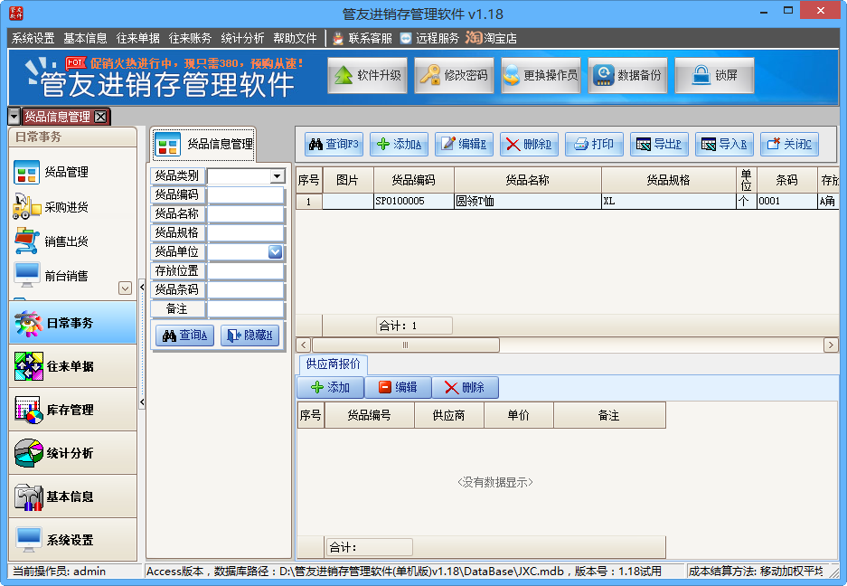 管友进销存管理软件是一款集进销存、财务、POS为一体的信息化企业管理软件。用于仓库、进销存管理。它适用于商业、企业、事业等单位管理商品、物资、用品、材料、零配件的采购、入库、分发、销售等日常工作。软件以易学易用为最大特色,界面风格统一,操作方式简单。软件中的每一个窗体,每一个功能菜单都很容易理解。