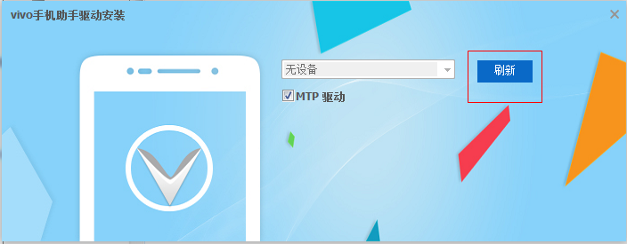 2.运行vivo手机助手驱动安装工具(如无显示手机设备去,请点击右边的“刷新”按钮)
