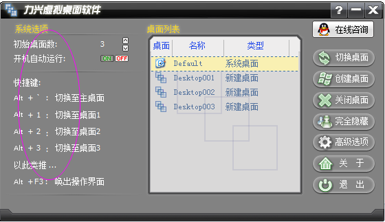 4、力兴虚拟桌面软件允许您关闭过多无用的桌面, 这样可以节省您的计算机资源.