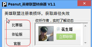对于习惯了在总是相同服务区的玩家来说,Peanut英雄联盟转换器可以算的上是能让你改变这个习惯的软件,它可以让你切换不同的服务区,让你体验不同的游戏方式,还能让你更了解这个游戏的乐趣,喜欢的朋友可以下载使用。