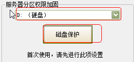 2、首次使用请先进行磁盘保护设置,软件会自动重新定义服务器选择的盘权限(建议对所有盘都进行设置);