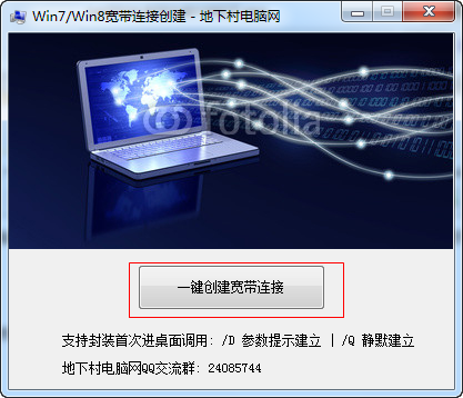 可以用于Win7&Win8创建宽带连接快捷方式,同时也支持支持封装默认调用。绿色软件,免安装,方便了装完系统后没有宽带连接快捷方式,用这个一键即可创建。