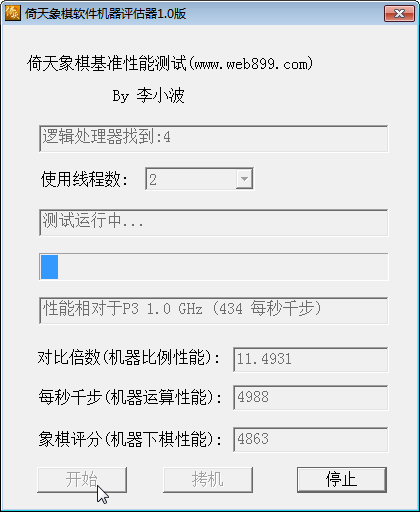 倚天象棋基准性能测试评估器是一款功能非常强大且绿色免费的软件,能够测试出倚天象棋当天的得分情况。同时也能测试cpu,你值得拥有哟!