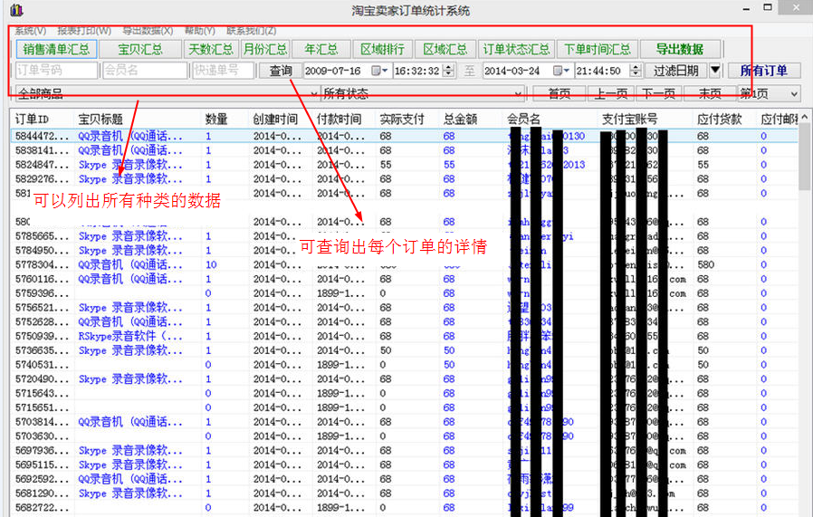 虾米淘宝卖家订单统计系统(淘宝订单统计系统)是一款可以自动统计每天,每月,每年以及制定时间内的销售定点。虾米淘宝卖家订单统计系统还具有丰富的报表格式,让您更具自己都需要来统计销售订单。