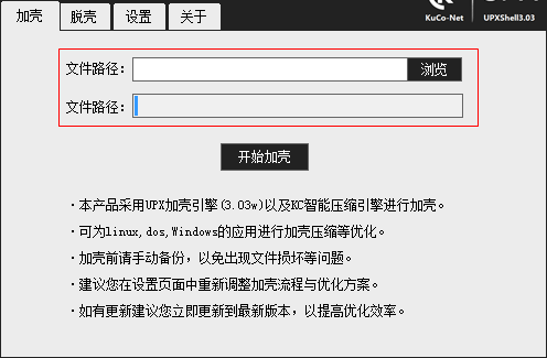 强大:采用程序的UPX加壳引擎(3.03w)和KuCo自我研发的加壳引擎。