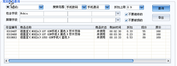 导出功能,可将列表中的商品编号导出,以便保存;导入功能,可将编号导入拍卖列号。此功能主要为职业拍卖服务。