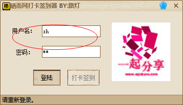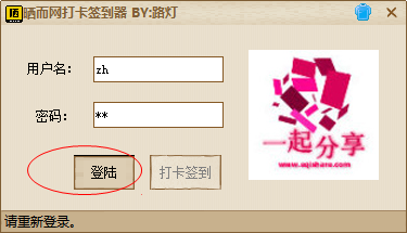2、打开软件填写账号密码,软件提示成功后,点击签到即可。