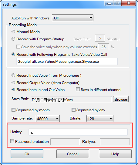 3、支持自动记录任务触发器选项。你可以选择任何VoIP软件自动记录到的时候是以语音对话。