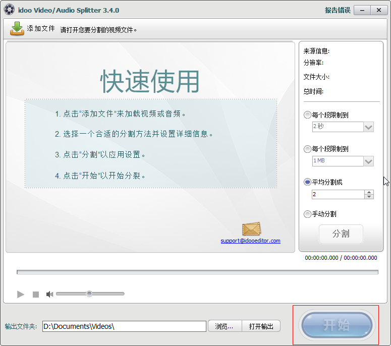 3.添加需要进行分割的文件,点击【开始】就行了