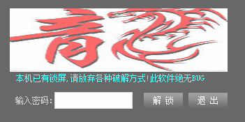 龍锁屏软件是一个绿色小巧的电脑挂机锁屏软件,当你有事需要暂时离开电脑,而又不想让别人动你的电脑的话,就可以使用这个小工具来锁定电脑屏幕,别人没有解锁密码是无法操作你的电脑的。