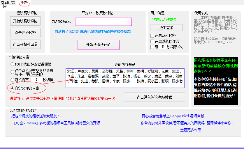 免费刷qq空间说说留言评论队形软件1.0.0 免费版