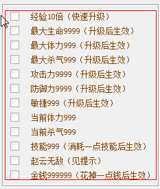 就是你在进了赵云传哪那个文件包以后,在进赵云传那个的运行文件后边,有个写字版的样子的Game.ini。进去它有一排的英文,光标放在在那个[init]后面按回车,然后它会空出一行,然后就输入GodMode=1(不用空格)这个有关大小写。你最好用复制粘贴过去。然后保存(一定要保存)然后再进到游戏,读取存档后就可以用了,顺便给你那些秘籍吧