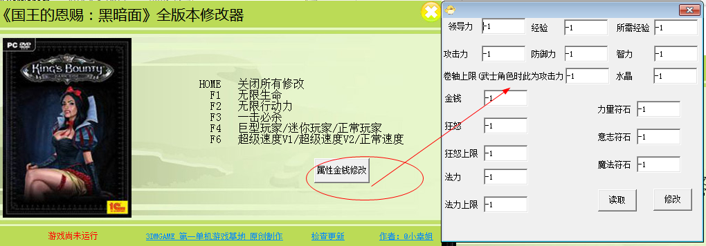 国王的恩赐:黑暗面全版本二十一项修改器的使用方法