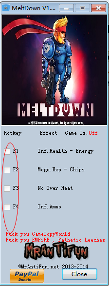 熔毁四项修改器是一款功能非常强大且绿色免费的辅助修改软件,提供无限生命、不会过热、无限弹药等实用功能,让你有不一样的游戏体验,你值得拥有!