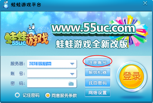 3、注册之后使用刚刚注册的账号登录蛙蛙游戏平台即可开始游戏