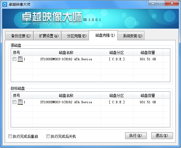 磁盘克隆:先选择要克隆的磁盘,然后选择克隆岛哪个磁盘,点击【执行】即可