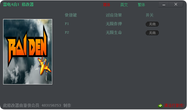 雷电4合1两项修改器是一款功能非常强大且绿色免费的辅助修改软件,提供无限炸弹、无限生命等实用功能,让你体验不一样的游戏魅力,你值得拥有哟!