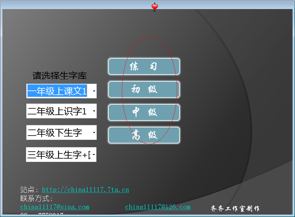 包括人教版小学一至三年级的全部生字。可自选一个阶段的生字库。开始练习。软件集注意力训练、识字练习、短时记忆训练于一体,是从幼儿园环境进入小学正式课堂学习环境适应训练的良好工具。也是小学预习与复习生子的有力武器。包括人教版小学一至三年级所有生字表一与生字表二的生字。按课本顺序编辑,选择相应生字库,快速开始练习。