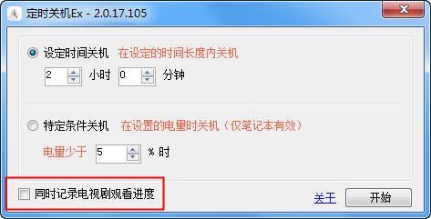 定时关机Ex软件是一款小巧的定时关机软件,除了基础的定时关机功能以外,还特别针对笔记本提供特定电量关机的功能,可以说非常的人性化。除此之外,该软件还提供了一个简单的电视剧观看进度记录功能,仅限于显示标题中包含“第”和“集”两个关键字的。