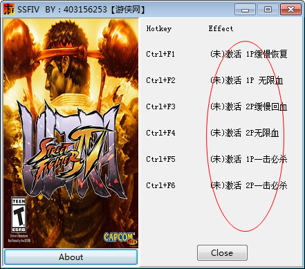 终极街头霸王4六项修改器是一款功能非常强大且绿色免费的辅助修改软件,提供缓慢回血、无限血、一击必杀等实用功能,让你有不一样的游戏体验,你值得拥有!