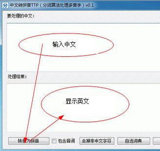中文转拼音工具具有将一段中文字转换成拼音的功能,只要在原中文字的框框内输入一段中文,然后点击“查拼音”的按钮,即可转换成功! 在这里输入你要转换的中文,然后点下面的“查拼音”,来查询拼音。